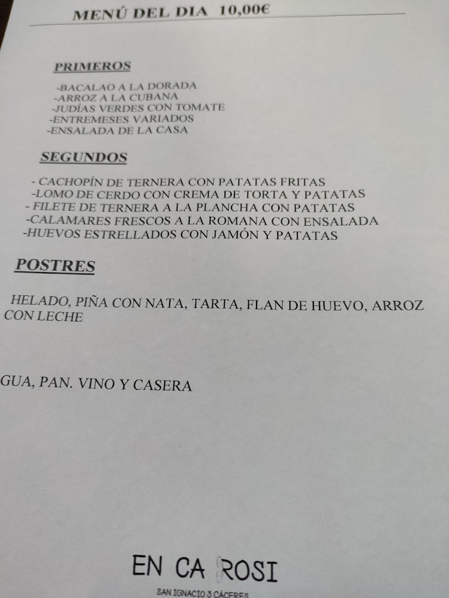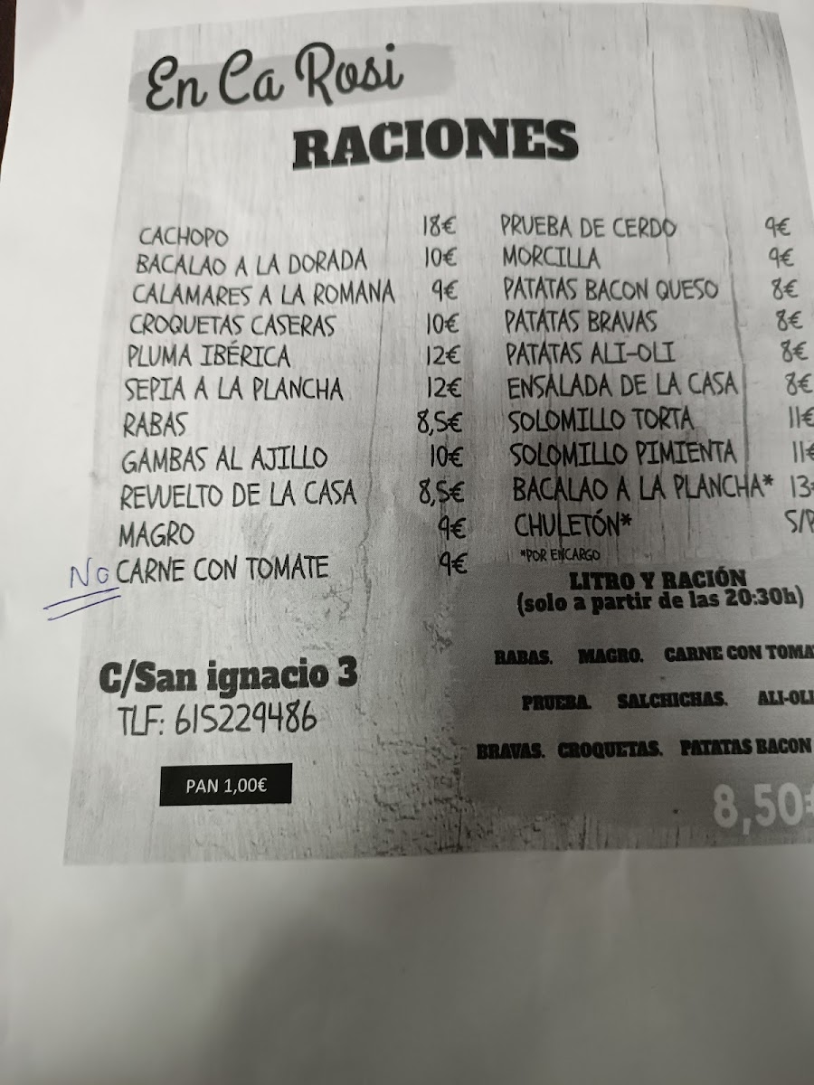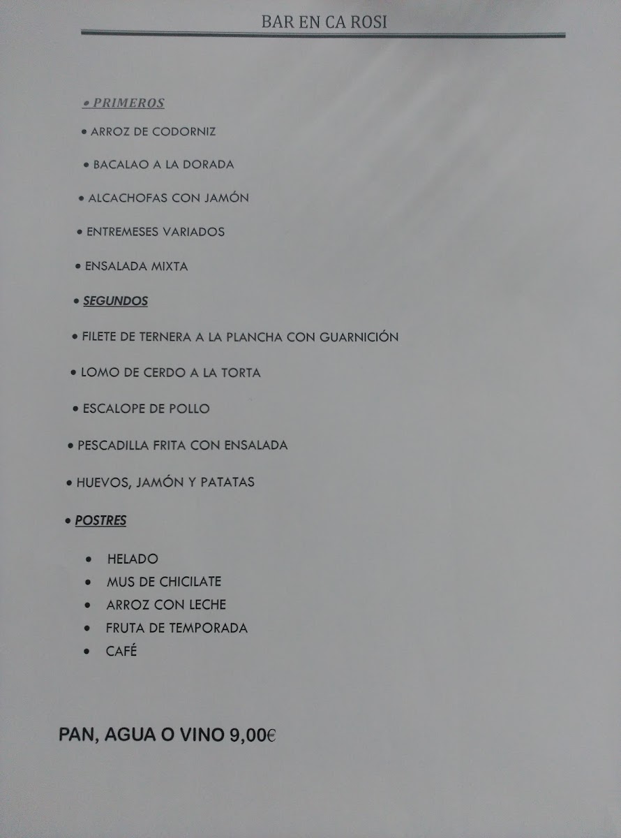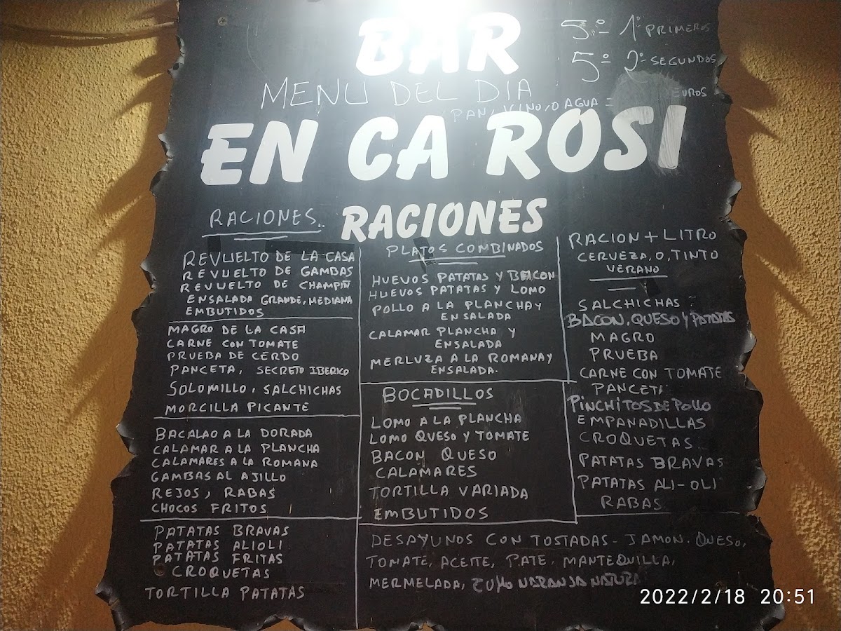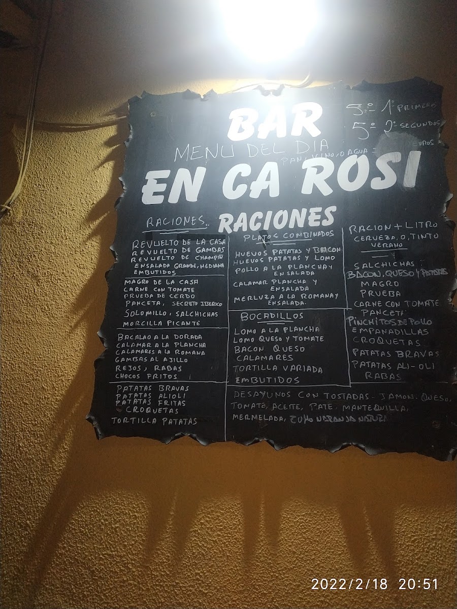 Bar En Ca Rosi Menu
