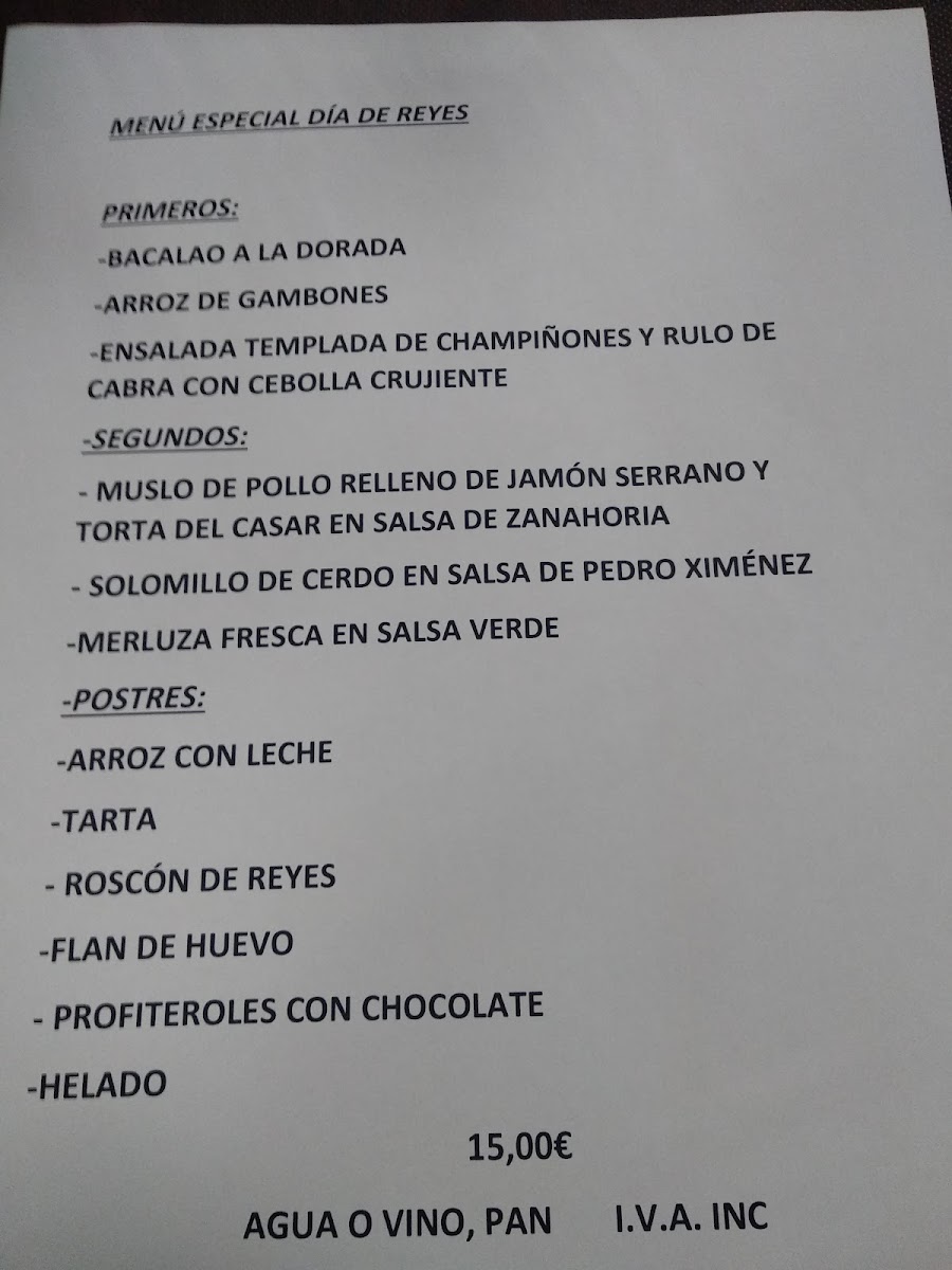 The menu offers a variety of traditional Spanish dishes alongside classic bar and restaurant options. It is organized into several food categories, including main courses, appetizers, and desserts. Visitors can find a selection of meat dishes such as cachopo, filete de ternera con patatas fritas, and codillo al horno, as well as seafood options like calamares romana, merluza, and sepia a la plancha. There are also egg-based dishes including huevos con patatas y jamón and huevos estrellados.